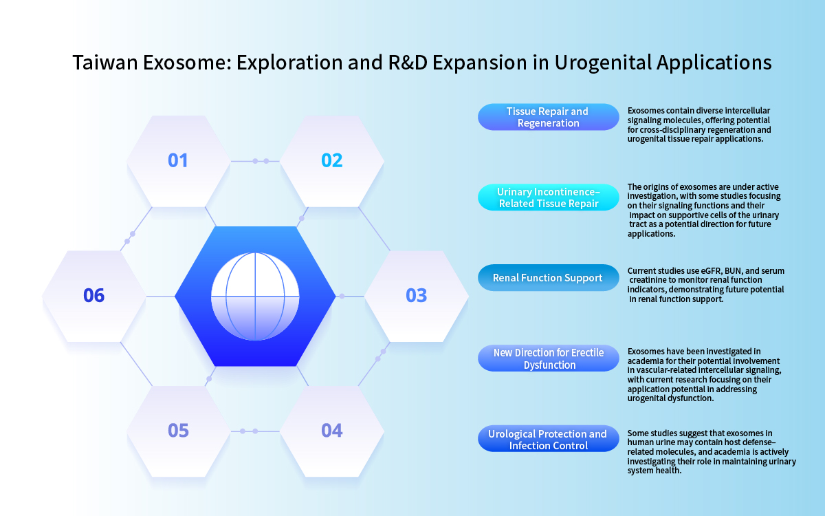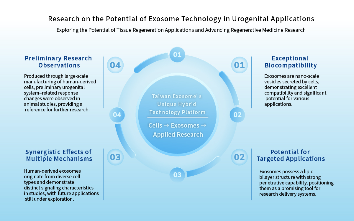 Taiwan is among the few Asian countries with legislation for regenerative medicine. The passage of the Regenerative Medicine Development Act clearly regulates exosomes, paving the way for research and clinical trials. Taiwan Exosome aims to leverage this policy advantage to advance technology applications and explore local development potential. The global exosome market for urological and reproductive applications is projected to grow from USD 20.6 million in 2024 to over USD 120 million by 2035, with the broader market expected to exceed USD 3 billion by 2030.