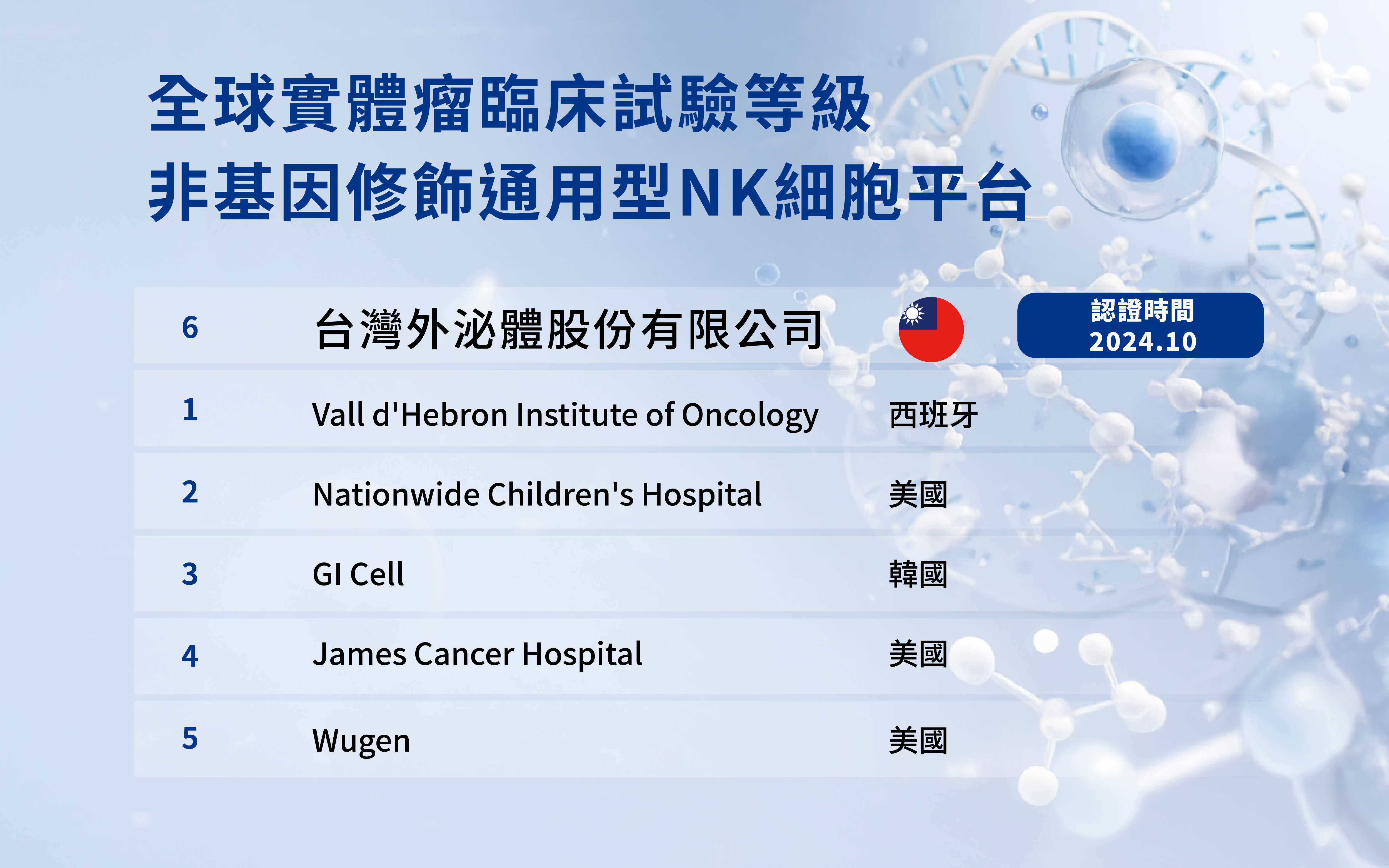 「台灣外泌體公司為國內首家臨床等級通用型(非配對與非基因修飾)NK細胞平台是公司技術布局的重要里程碑,展現我們在製備、研發與臨床接軌上的整合能力。